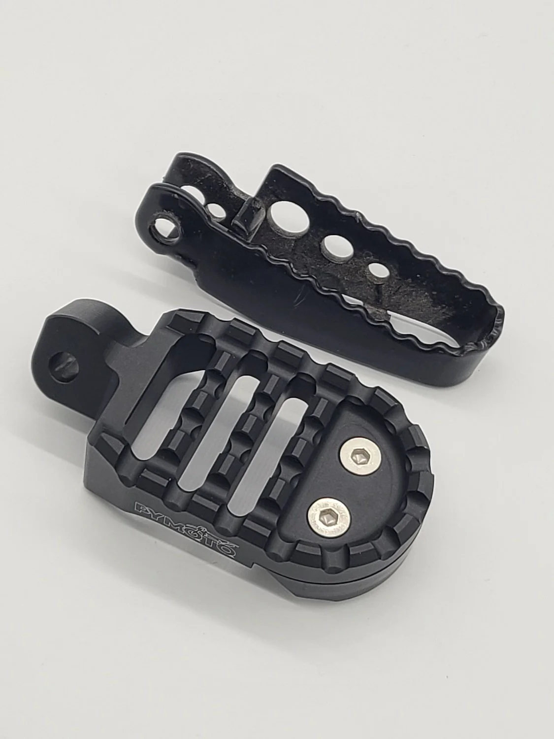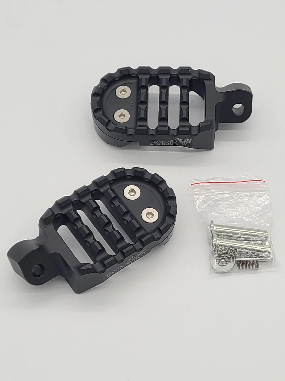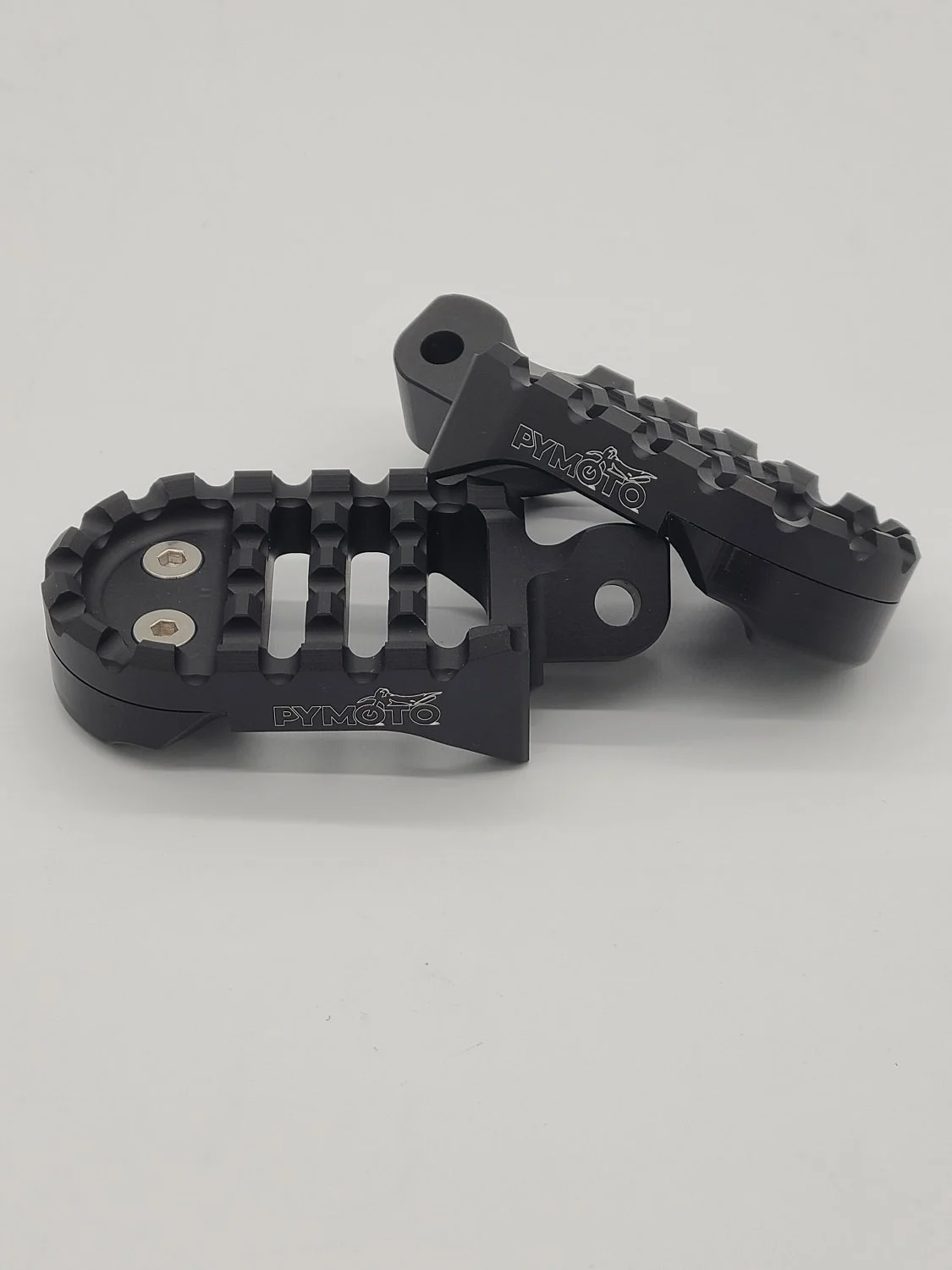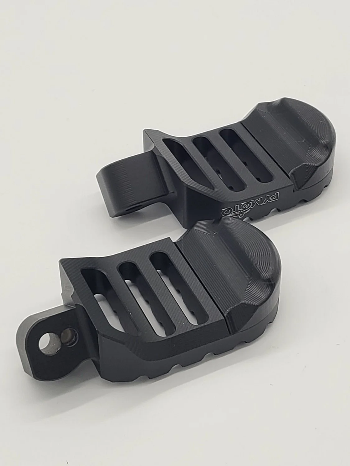 Our 茂木 “Motegi” one-piece CNC foot pegs are machined from solid billet aluminum and hard anodized for strength and longevity. Complete with a replaceable, low friction POM slider and absent of any shin shredding spikes or screws. Gain much needed foot room, improve grip and enhance performance, all while maintaining the original folding peg functionality and never sacrificing your lean angles.